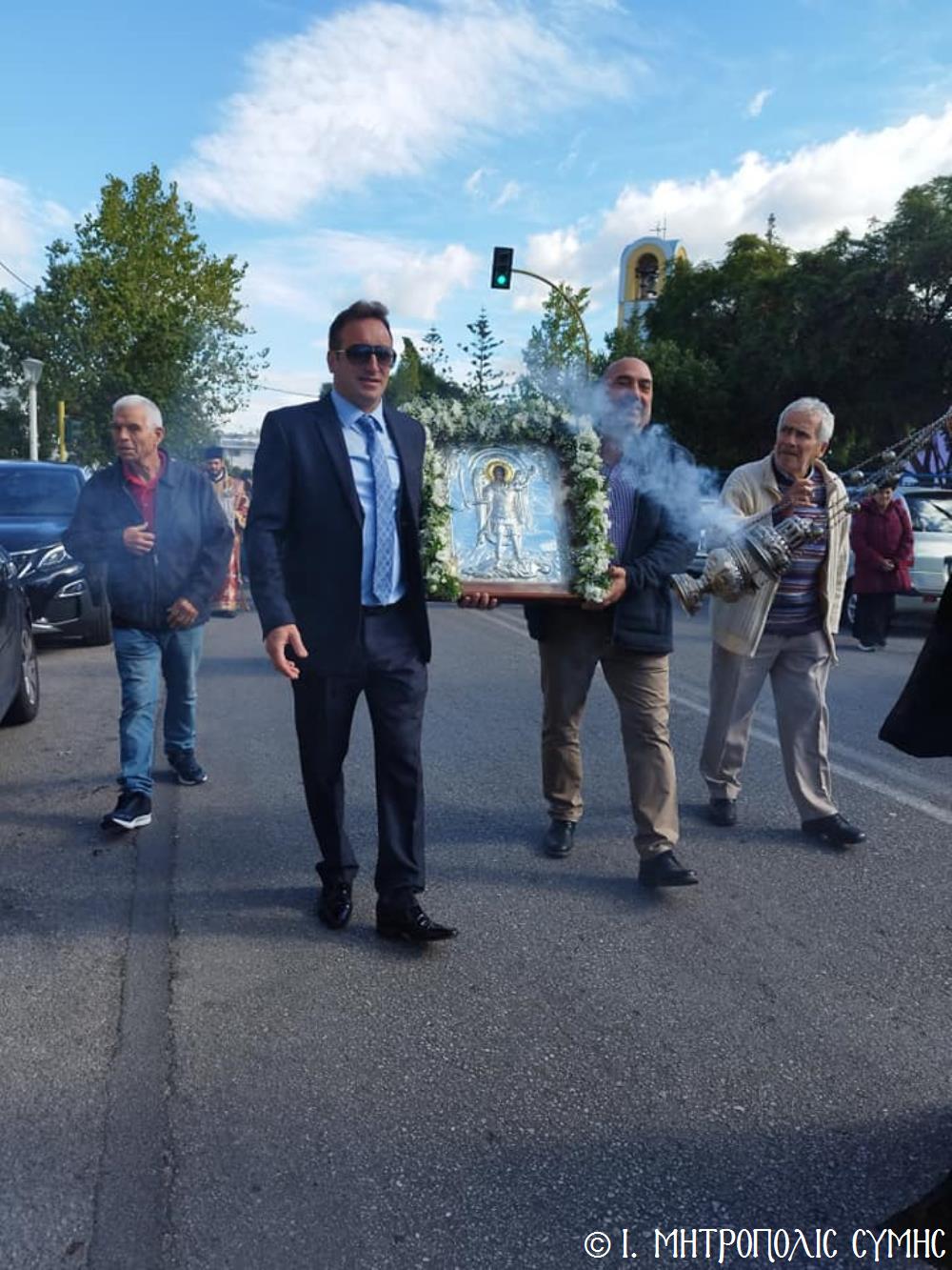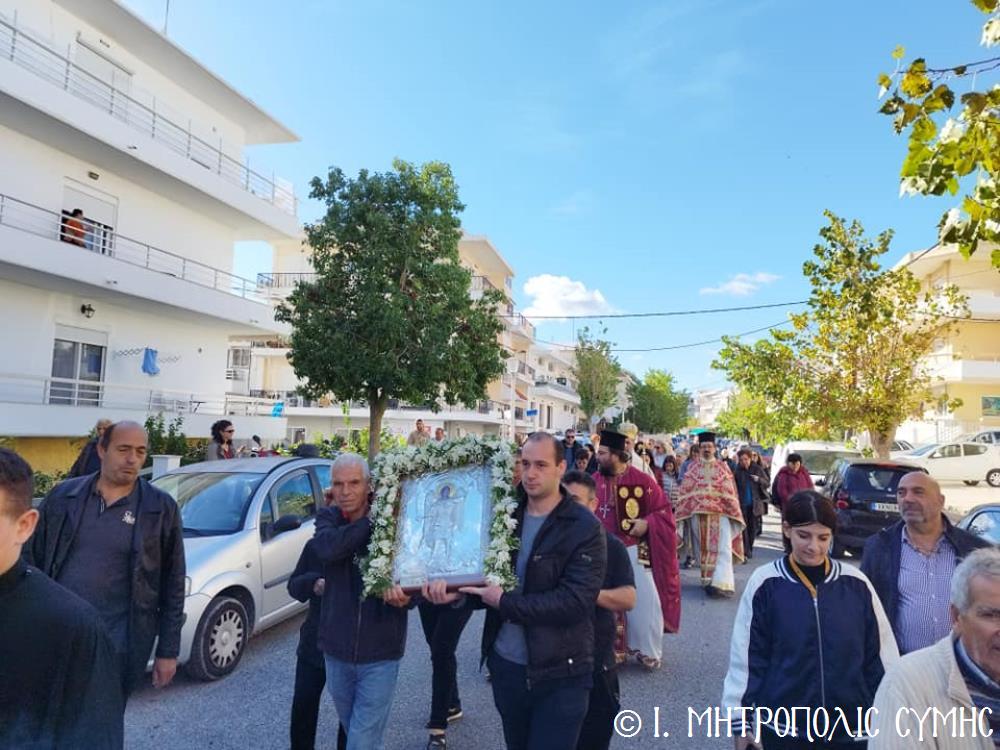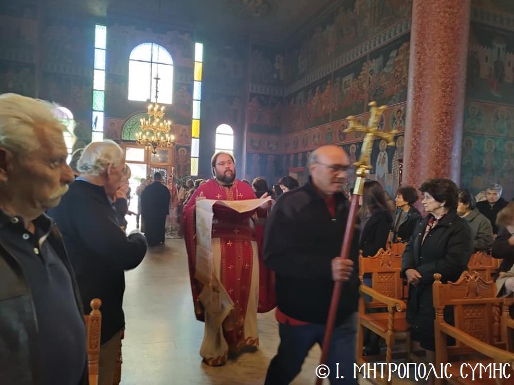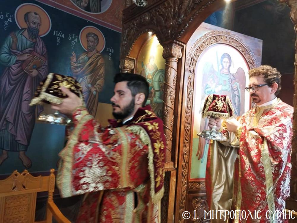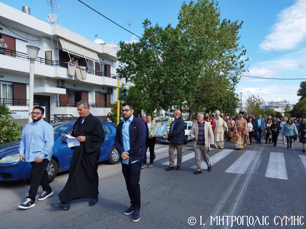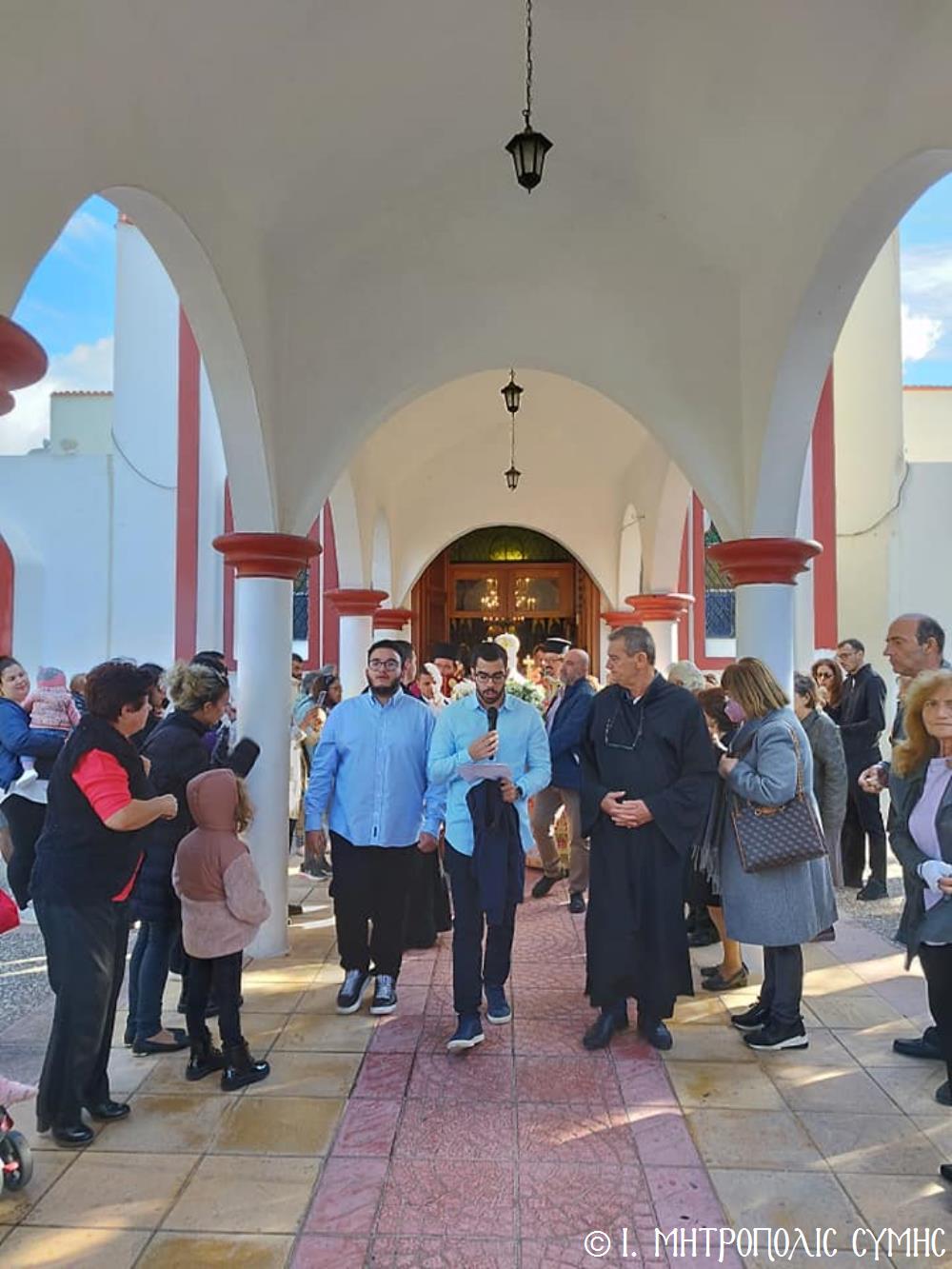 Σήμερα τό πρωΐ, Κυριακή 19η Νοεμβρίου, ὁ Σεβ. Μητροπολίτης μας κ. Χρυσόστομος, κανονικῇ ἀδείᾳ καί προτροπῇ τοῦ οἰκείου Σεβ. Μητροπολίτου Ρόδου κ. Κυρίλλου, χοροστάτησε εἰς τόν Ὄρθρο καί τέλεσε τήν Θεία Λειτουργία στόν Ἐνοριακό Ἱερό Ναό Ἀναλήψεως τοῦ Σωτῆρος πόλεως Ρόδου, εὐλόγησε τήν προσφερομένη Ἀρτοκλασία τοῦ Συλλόγου, ἐνῶ στό τέλος προέστη τῆς λαμπρᾶς Λιτανείας, πέριξ τοῦ Ἱ. Ναοῦ, τῆς Εἰκόνας τοῦ Ταξιάρχου Μιχαήλ τοῦ Πανορμίτου, ἀντιγράφου τῆς πρωτοτύπου, πού φυλάσσεται πρός εὐλογία τῶν Μελῶν τοῦ Συλλόγου στό «Συμιακό σπίτι». Συλλειτούργησαν, ὁ Πανοσιολ. Ἀρχιμανδρίτης Ἰωαννίκιος Ἀναγνώστου, ὁ Αιδεσιμολ. Πρωτοπρεσβύτερος Ἐμμανουήλ Σκλιβάκης καί ὁ Εὐλαβ. Διάκονος Νικηφόρος Γιαννίκος.