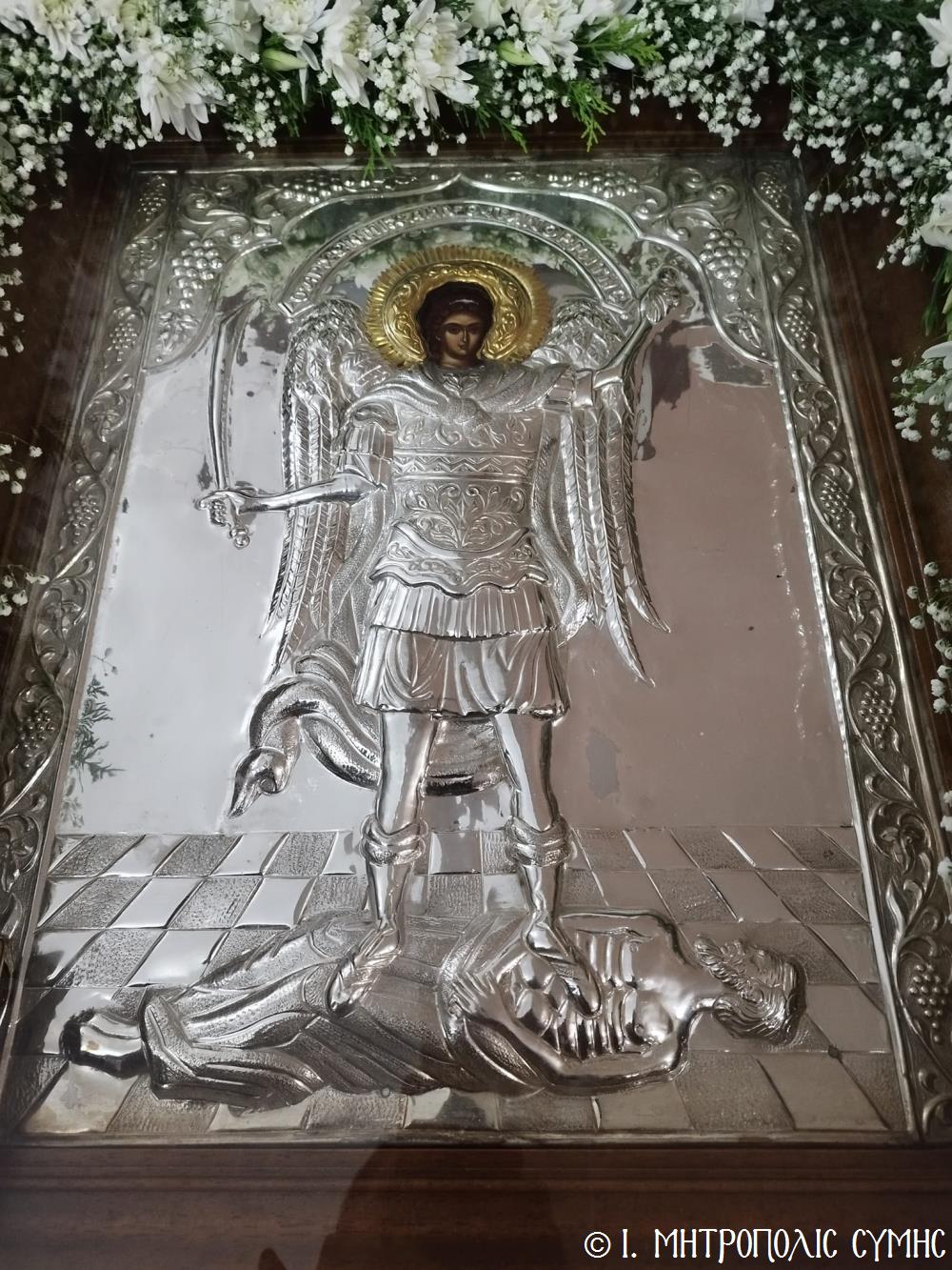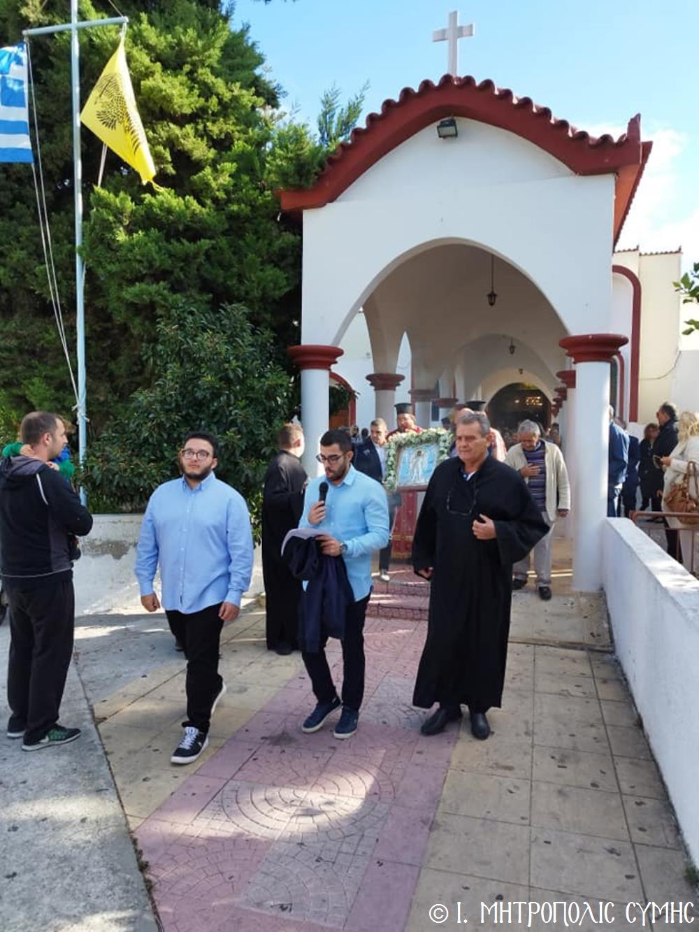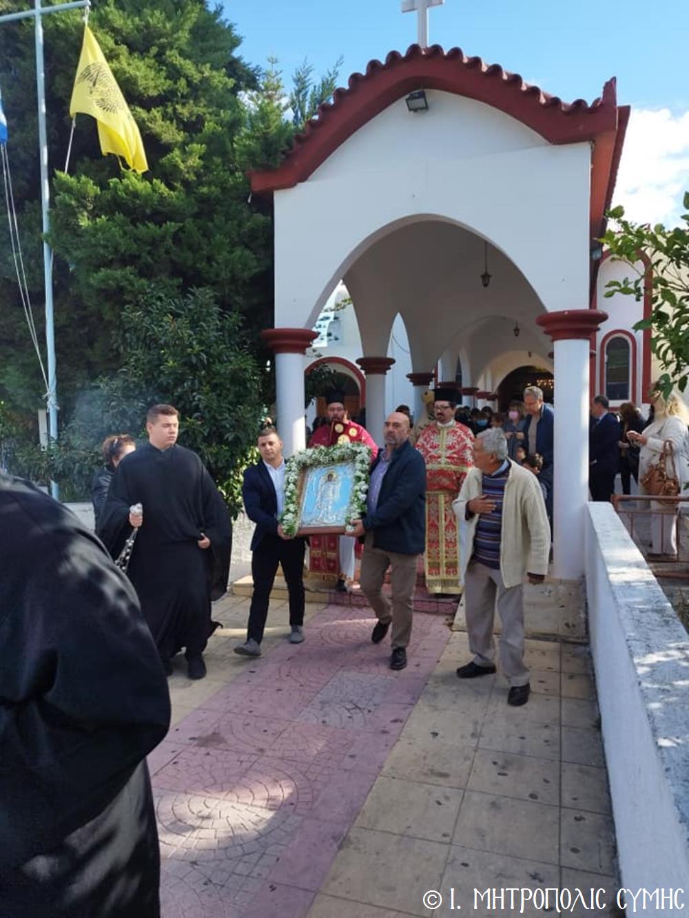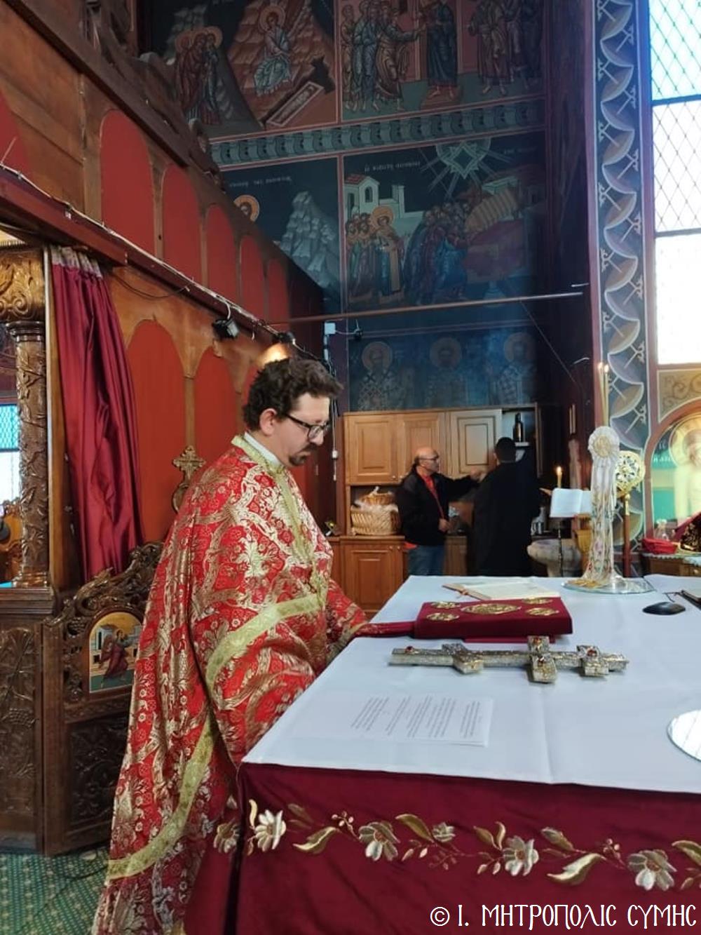 Σήμερα τό πρωΐ, Κυριακή 19η Νοεμβρίου, ὁ Σεβ. Μητροπολίτης μας κ. Χρυσόστομος, κανονικῇ ἀδείᾳ καί προτροπῇ τοῦ οἰκείου Σεβ. Μητροπολίτου Ρόδου κ. Κυρίλλου, χοροστάτησε εἰς τόν Ὄρθρο καί τέλεσε τήν Θεία Λειτουργία στόν Ἐνοριακό Ἱερό Ναό Ἀναλήψεως τοῦ Σωτῆρος πόλεως Ρόδου, εὐλόγησε τήν προσφερομένη Ἀρτοκλασία τοῦ Συλλόγου, ἐνῶ στό τέλος προέστη τῆς λαμπρᾶς Λιτανείας, πέριξ τοῦ Ἱ. Ναοῦ, τῆς Εἰκόνας τοῦ Ταξιάρχου Μιχαήλ τοῦ Πανορμίτου, ἀντιγράφου τῆς πρωτοτύπου, πού φυλάσσεται πρός εὐλογία τῶν Μελῶν τοῦ Συλλόγου στό «Συμιακό σπίτι». Συλλειτούργησαν, ὁ Πανοσιολ. Ἀρχιμανδρίτης Ἰωαννίκιος Ἀναγνώστου, ὁ Αιδεσιμολ. Πρωτοπρεσβύτερος Ἐμμανουήλ Σκλιβάκης καί ὁ Εὐλαβ. Διάκονος Νικηφόρος Γιαννίκος.