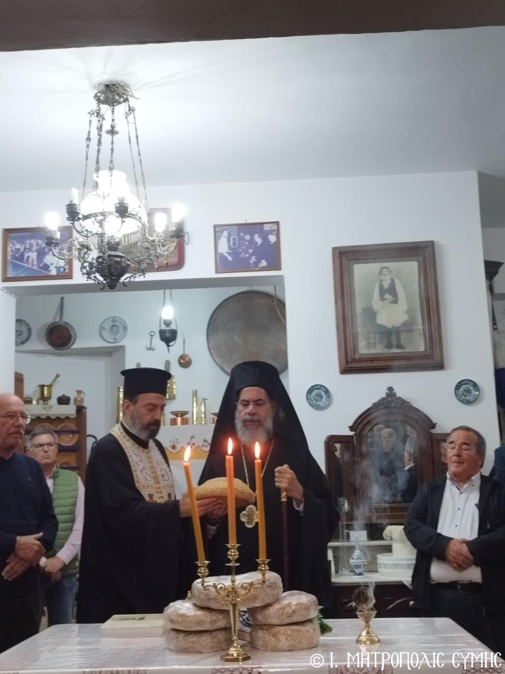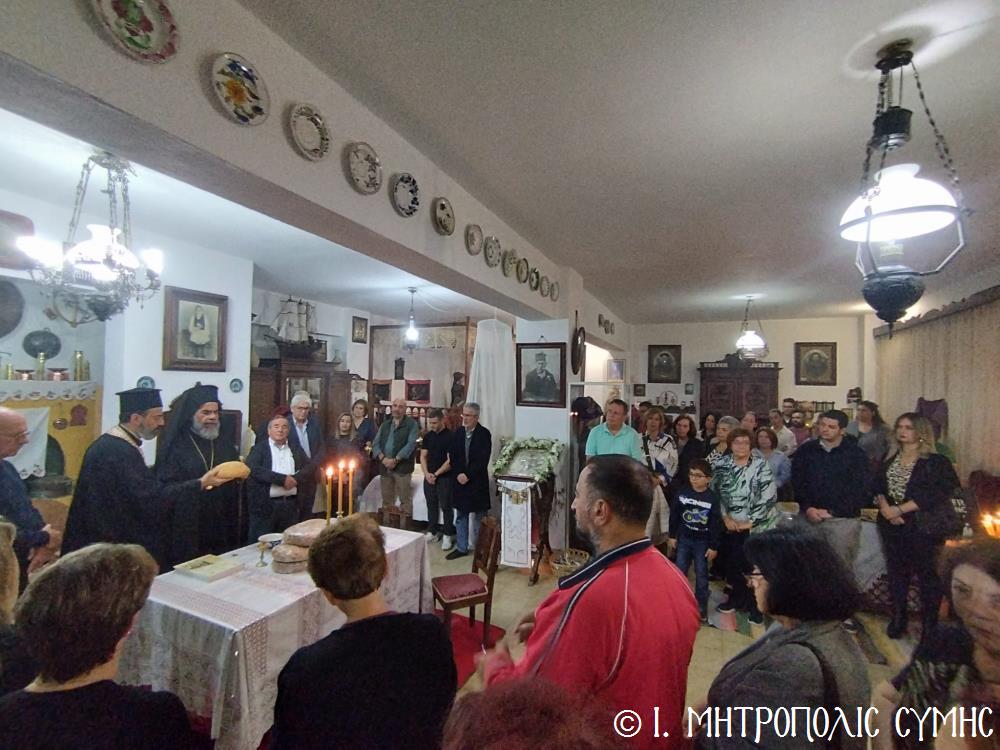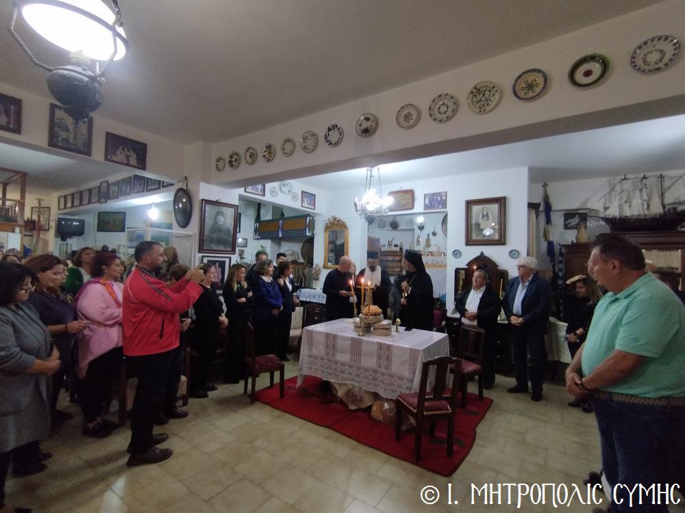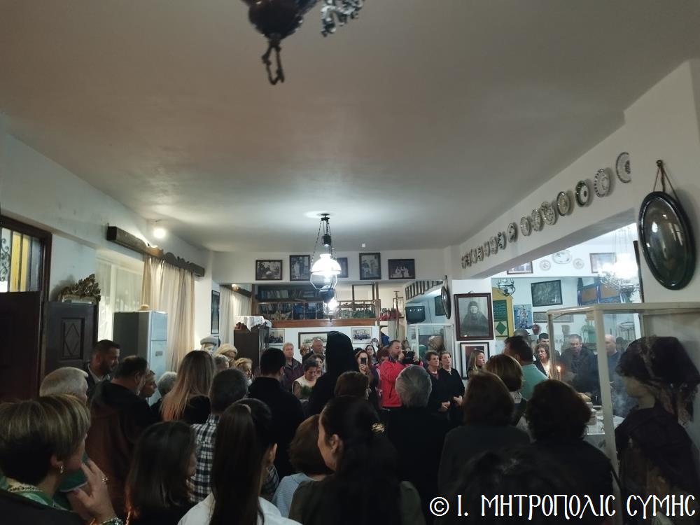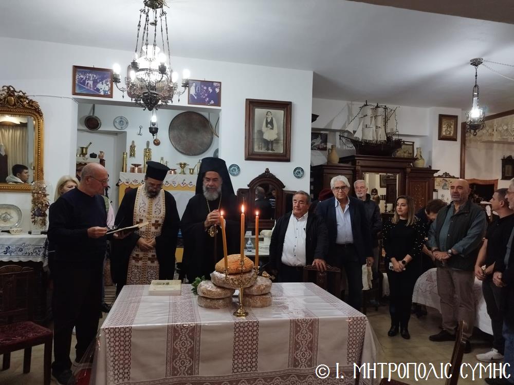 Τό βράδυ τοῦ Σαββάτου, ὁ Σεβασμιώτατος ἐπισκέφθηκε τό «Συμιακό σπίτι» μέ τόν ὑπέροχο ἐκθεσιακό του χῶρο, ὅπου εὐλόγησε τήν Ἀρτοκλασία καί τέλεσε Ἁγιασμό. Ἐν συνεχείᾳ, παρουσίασε μέ ἰδιαιτέρα χαρά καί ἱκανοποίηση τόν ἄρτι τυπωθέντα ἐπετειακό Τόμο: «100 χρόνια, Πανορμίτειο Γυμνάσιο Σύμης, 1922-2022», ἔκδοση τῆς καθ’ ἡμᾶς Ἱερᾶς Μητροπόλεως, ὁ ὁποῖος ἐξεδόθη μέ τήν συνεργασία καί ἀρωγή, μεταξύ ἄλλων, καί τοῦ Συλλόγου «Γλαῦκος» καί ἰδιαιτέρως τοῦ ἐξέχοντος στελέχους του κ. Ἐμμανουήλ Ἀντωνόγλου, ὁ ὁποῖος μετεῖχε στήν ἐκδοτική ἐπιτροπή.