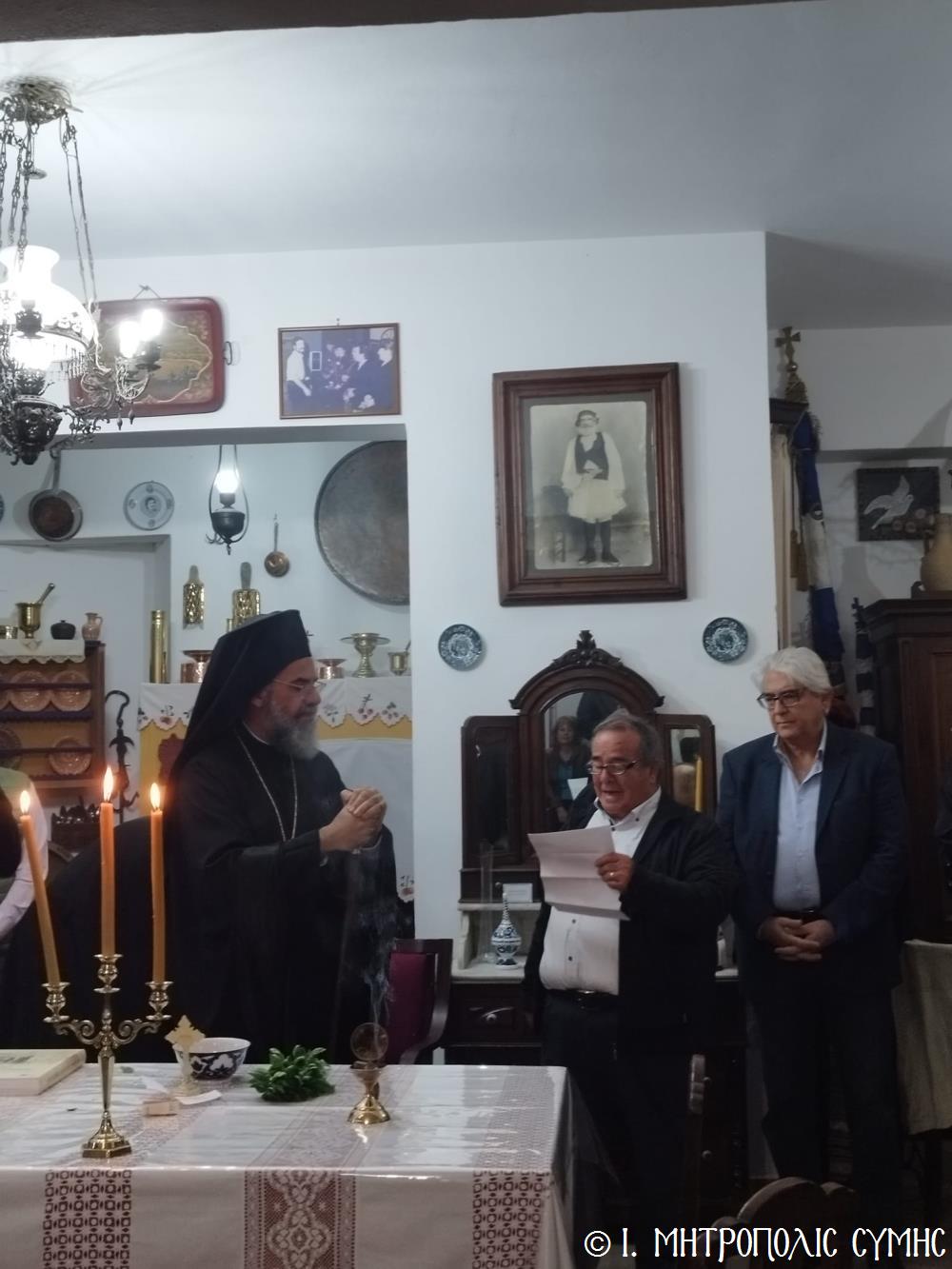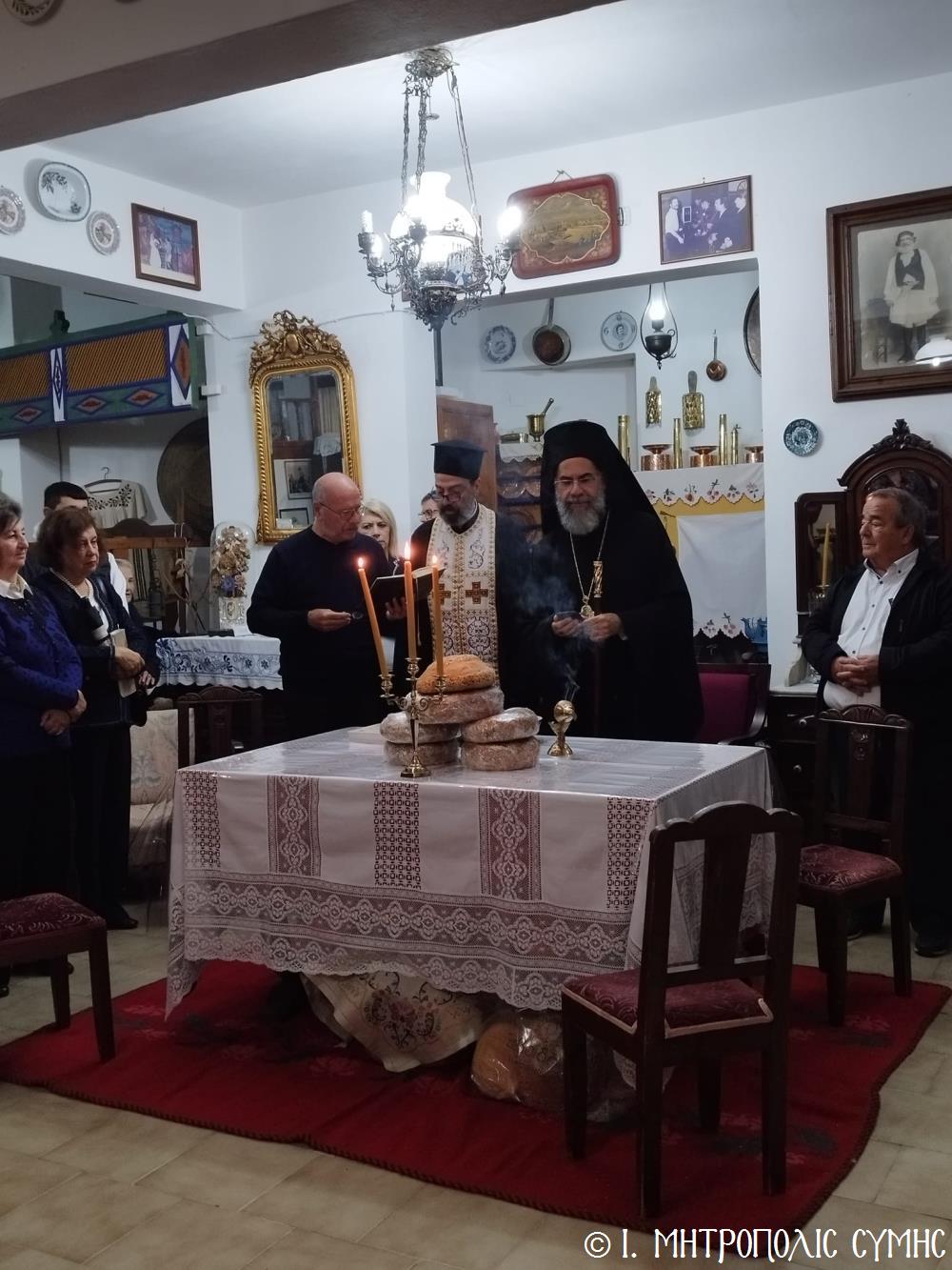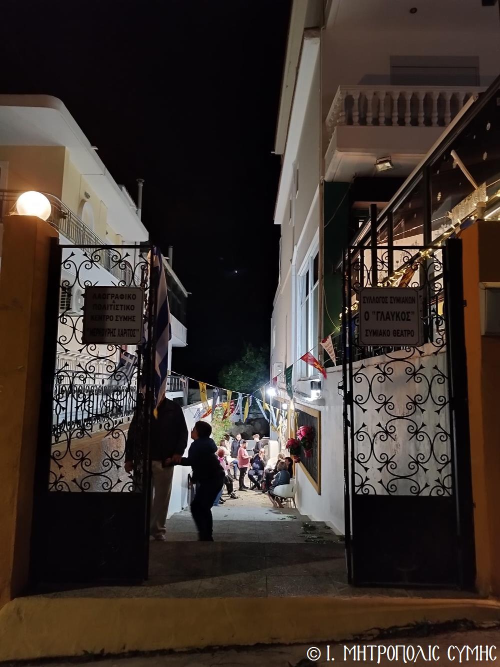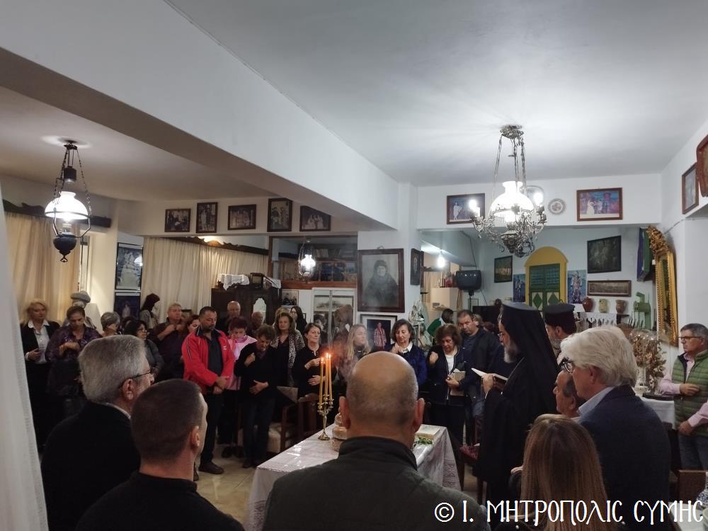 Τό βράδυ τοῦ Σαββάτου, ὁ Σεβασμιώτατος ἐπισκέφθηκε τό «Συμιακό σπίτι» μέ τόν ὑπέροχο ἐκθεσιακό του χῶρο, ὅπου εὐλόγησε τήν Ἀρτοκλασία καί τέλεσε Ἁγιασμό. Ἐν συνεχείᾳ, παρουσίασε μέ ἰδιαιτέρα χαρά καί ἱκανοποίηση τόν ἄρτι τυπωθέντα ἐπετειακό Τόμο: «100 χρόνια, Πανορμίτειο Γυμνάσιο Σύμης, 1922-2022», ἔκδοση τῆς καθ’ ἡμᾶς Ἱερᾶς Μητροπόλεως, ὁ ὁποῖος ἐξεδόθη μέ τήν συνεργασία καί ἀρωγή, μεταξύ ἄλλων, καί τοῦ Συλλόγου «Γλαῦκος» καί ἰδιαιτέρως τοῦ ἐξέχοντος στελέχους του κ. Ἐμμανουήλ Ἀντωνόγλου, ὁ ὁποῖος μετεῖχε στήν ἐκδοτική ἐπιτροπή.